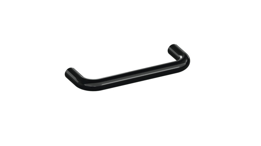 HEWI Bügelgriff 548.106; Material: Kunststoff; Befestigung: mit Holzschrauben; Einsatzbereich: Möbel; Farbe: schwarz; Farbton: tiefschwarz; Länge: 106 mm; Höhe: 35 mm; Durchmesser: 10 mm; Oberfläche:
