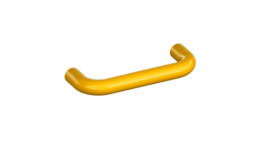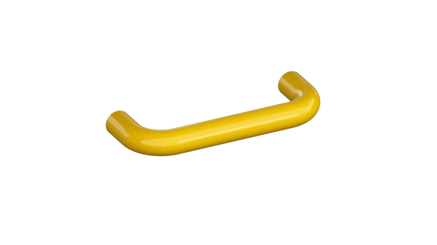HEWI Bügelgriff 548.13.96; Material: Kunststoff; Befestigung: mit Holzschrauben; Einsatzbereich: Möbel; Farbe: gelb; Farbton: senfgelb; Länge: 109 mm; Höhe: 38 mm; Durchmesser: 13 mm; Oberfläche: durc