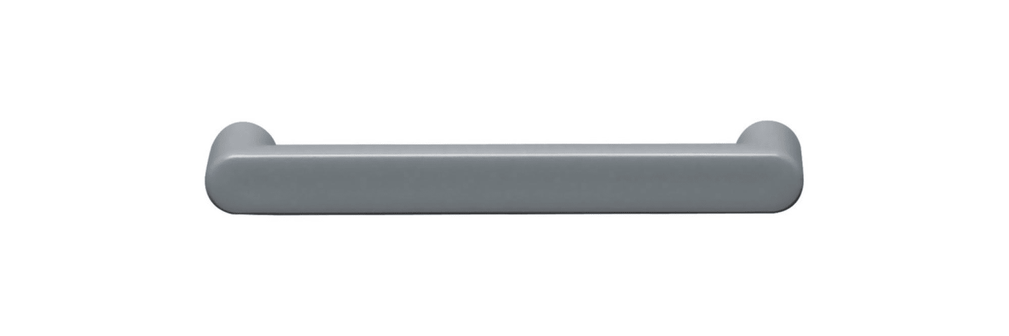 HEWI Bügelgriff 548.17.128.4; Material: Kunststoff; Befestigung: mit Holzschrauben; Einsatzbereich: Möbel; Farbe: grau; Farbton: felsgrau; Länge: 144 mm; Höhe: 26 mm; Durchmesser: 16 mm; Oberfläche: d