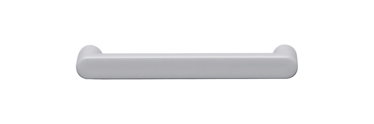 HEWI Bügelgriff 548.17.128.4; Material: Kunststoff; Befestigung: mit Holzschrauben; Einsatzbereich: Möbel; Farbe: grau; Farbton: lichtgrau; Länge: 144 mm; Höhe: 26 mm; Durchmesser: 16 mm; Oberfläche: