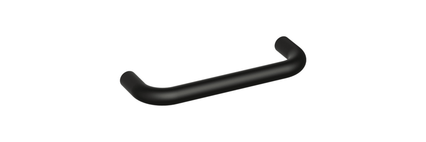 HEWI Bügelgriff 548.110B; Material: Kunststoff; Befestigung: mit Holzschrauben; Einsatzbereich: Möbel; Farbe: schwarz; Farbton: tiefschwarz; Länge: 110 mm; Höhe: 35 mm; Durchmesser: 10 mm; Oberfläche:
