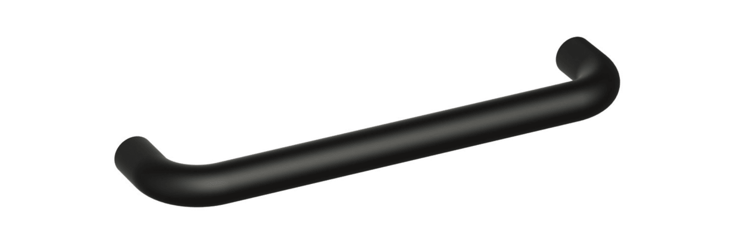 HEWI Bügelgriff 548.16B192; Material: Kunststoff; Befestigung: mit Holzschrauben; Einsatzbereich: Möbel; Farbe: schwarz; Farbton: tiefschwarz; Länge: 208 mm; Höhe: 44 mm; Durchmesser: 16 mm; Oberfläch