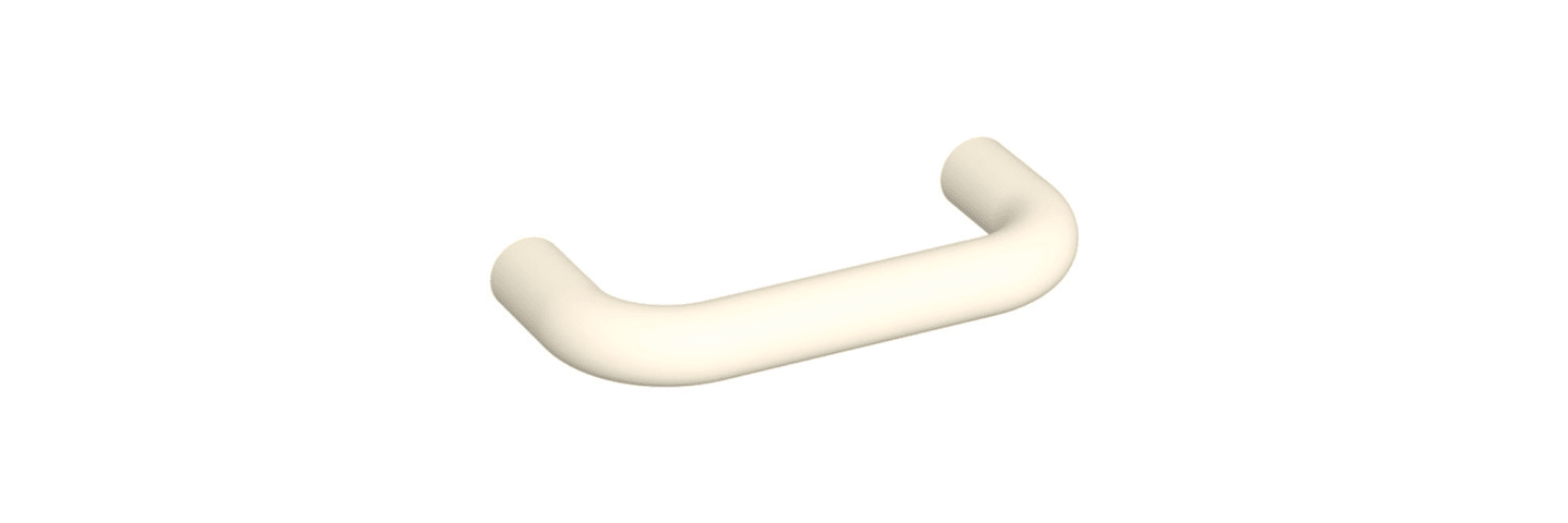 HEWI Bügelgriff 548.74B; Material: Kunststoff; Befestigung: mit Holzschrauben; Einsatzbereich: Möbel; Farbe: weiß; Farbton: reinweiß; Länge: 74 mm; Höhe: 32 mm; Durchmesser: 10 mm; Oberfläche: matt; M