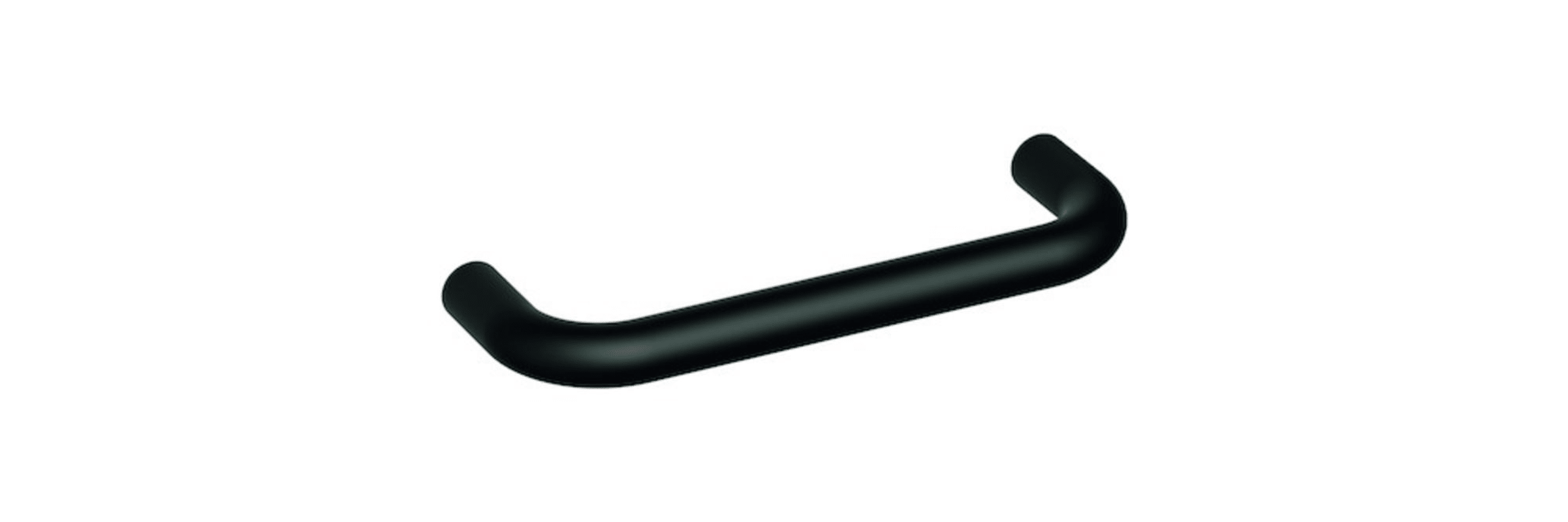 Möbelgriff Modell 548 aus durchgefärbtem mattem Polyamid, Durchmesser 10 mm. Befestigungsabstand 128 mm. gerader Griff in gebogener Form ausgeführt, mit gerader Anbindung, für einseitige Befestigung