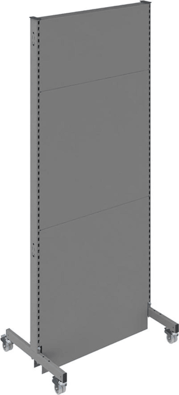 Lieferung als Set: Akustikwand mit Dämmung, fest verschweißter Trägerrahmen, 2 Füße mit feststellbaren Doppelrollen.