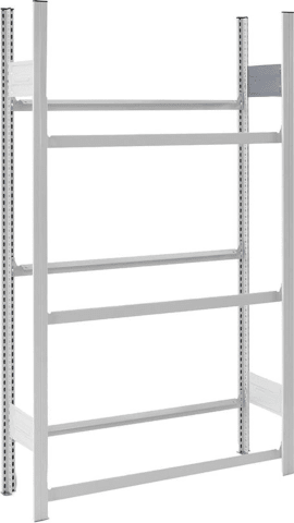 Getränkekistenregal • Einfache und schnelle Steckmontage, beliebig erweiterbar • Belastung pro Ebene: 100 kg (bei gleichmäßiger Belastung) Planungshinweis: Außenmaß: Breiten Grundregal + 60 mm. Breiten Anbauregal + 10 mm. Bodentiefe + 35 mm. Sicherheitshinweis: Alle Getränkekistenregale müssen gegen Kippen gesichert werden (DGUV Regel 108-007).