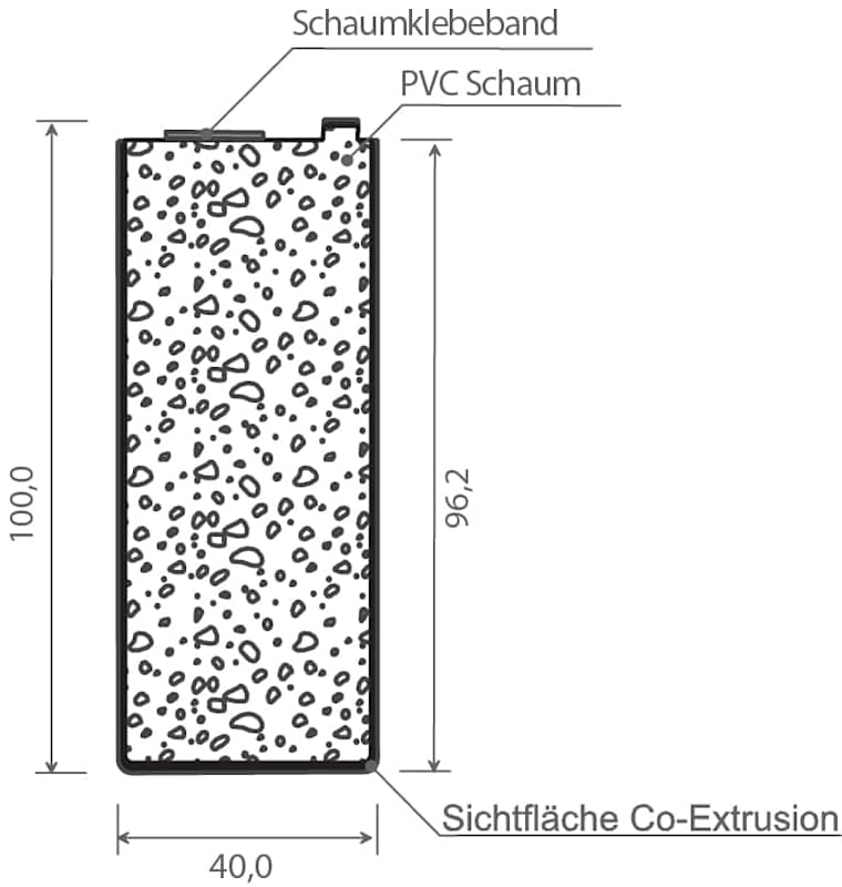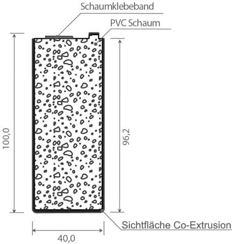 GU-Bodeneinstand 100 mm Lg. 6,50 m Grau, 100x40 mm PVC Schaum, mit SK für Schwelle 211 VGE 800 Nutzhöhe: ca. 97 mm
