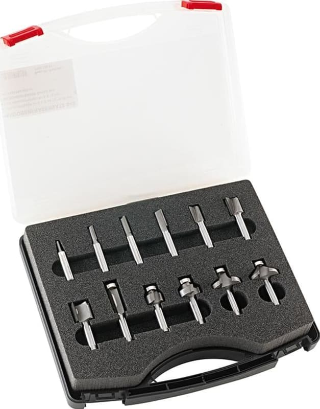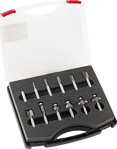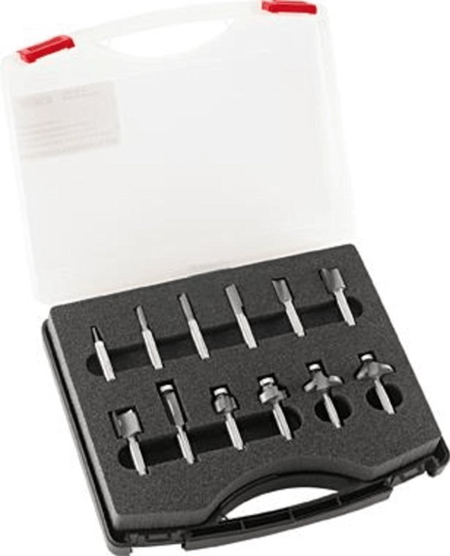 HW-Handoberfräser-Satz Nr. 7500• Hartmetall-bestückte Schneiden • Schaft-Ø 8 mm Lieferung: Im Kunststoffkoffer. Inhalt: Nutfräser 4; 6; 8; 10; 12; 16; 20 mm Bündigfräser 13 x 25 mm mit Anlaufl