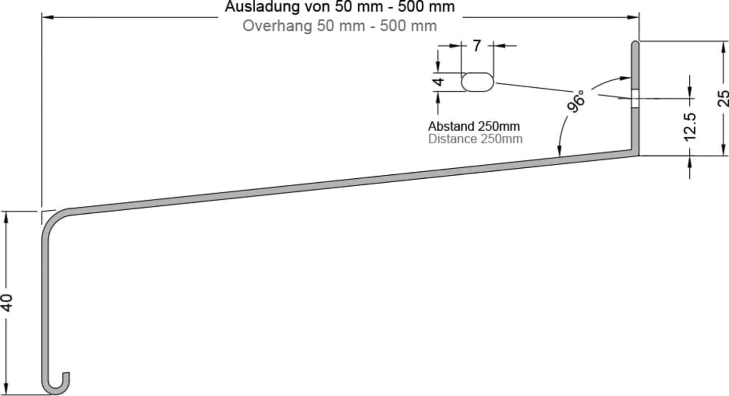 • Abgestufte Ausladungstiefen bis 500 mm ermöglichen den Einsatz auch bei WDVS-Systemen.