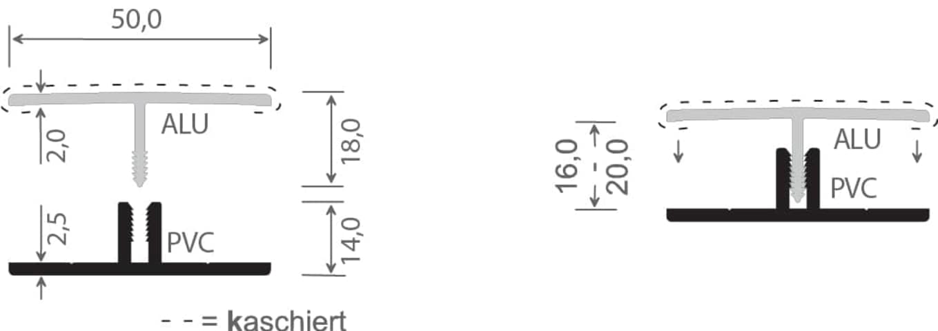H-Profil zweiteilig 50 mm Lg. 6,00 m foliert 470 3001 TURNER OAK MALT [147]