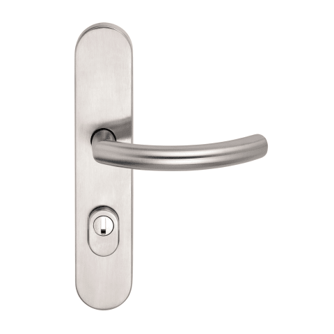 BKS Schutz-Drücker-Halbgarnitur OFFICE B-75130; Material: Edelstahl; Befestigungsart: verdeckt verschraubt; Vierkant: 9 mm; Befestigungstechnik: mit Stütznocken; Form: oval; Benutzerklasse: Klasse 4;
