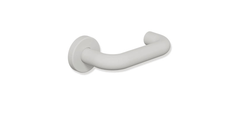 HEWI Halbgarnitur 111PBR51.230; Produkttyp: Halbgarnitur; Produkttyp (Hersteller): Halbgarnitur; Ausführung: ohne Schlüsselrosette; Befestigungsart Drückerrosette (innen): verdeckt verschraubt; Befestigungstechnik: mit Stütznocken; Montageart: aufliegend; Form Drückerrosette: rund; Vierkant: 8 mm; Material: Kunststoff; Material Unterkonstruktion (Griffrosette): Kunststoff-Edelstahlverbundbau; Form Türgriff (innen): U-Form; Ausführung Türgriff (innen): mit Stahlkern; Durchmesser Türgriff (innen): 23 mm; Länge Türgriff (innen): 150 mm; Höhe Türgriff (innen): 67 mm; Durchmesser Drückerrosette (außen): 55 mm; Durchmesser Drückerrosette (innen): 55 mm; Höhe Drückerrosette (innen): 10,5 mm; Lagerung: festdrehbar,wartungsfreies Gleitlager; Einsatzbereich: Haustür,Zimmertür,Objekttür; Türart: Vollblatt; Türwerkstoff: Stahl,Holz; Anwendung: innen; DIN-Richtung: DIN Links-Rechts; Farbe: grau; Farbton: lichtgrau; Oberfläche: matt; Technik: R-Technik; Ausführung Vierkant: Vierkantstift; Norm: DIN 18255,DIN EN 1906,DIN 18040