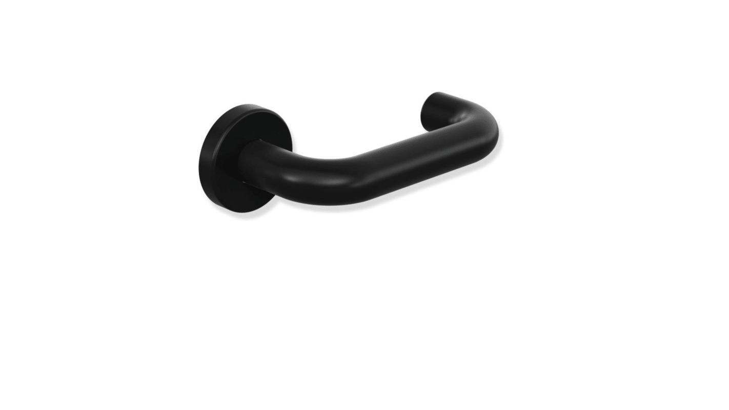 HEWI Halbgarnitur 111PBR51.230; Produkttyp: Halbgarnitur; Produkttyp (Hersteller): Halbgarnitur; Ausführung: ohne Schlüsselrosette; Befestigungsart Drückerrosette (innen): verdeckt verschraubt; Befestigungstechnik: mit Stütznocken; Montageart: aufliegend; Form Drückerrosette: rund; Vierkant: 8 mm; Material: Kunststoff; Material Unterkonstruktion (Griffrosette): Kunststoff-Edelstahlverbundbau; Form Türgriff (innen): U-Form; Ausführung Türgriff (innen): mit Stahlkern; Durchmesser Türgriff (innen): 23 mm; Länge Türgriff (innen): 150 mm; Höhe Türgriff (innen): 67 mm; Durchmesser Drückerrosette (außen): 55 mm; Durchmesser Drückerrosette (innen): 55 mm; Höhe Drückerrosette (innen): 10,5 mm; Lagerung: festdrehbar,wartungsfreies Gleitlager; Einsatzbereich: Haustür,Zimmertür,Objekttür; Türart: Vollblatt; Türwerkstoff: Stahl,Holz; Anwendung: innen; DIN-Richtung: DIN Links-Rechts; Farbe: schwarz; Farbton: tiefschwarz; Oberfläche: matt; Technik: R-Technik; Ausführung Vierkant: Vierkantstift; Norm: DIN 18255,DIN EN 1906,DIN 18040
