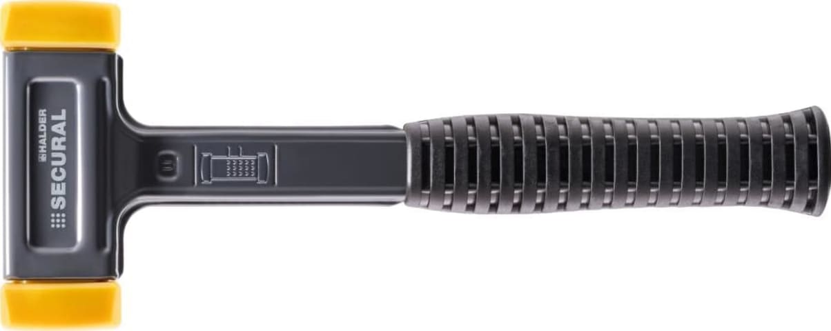 Schonhammer SECURAL Nr. 3380• Rückschlagfrei • Schlagköpfe aus Polyurethan, mittelhart, dämpfend, geräuscharm, widerstandsfähig, austauschbar • Hammerkörper aus Stahl • Stahlblechgehäuse mit Gummi