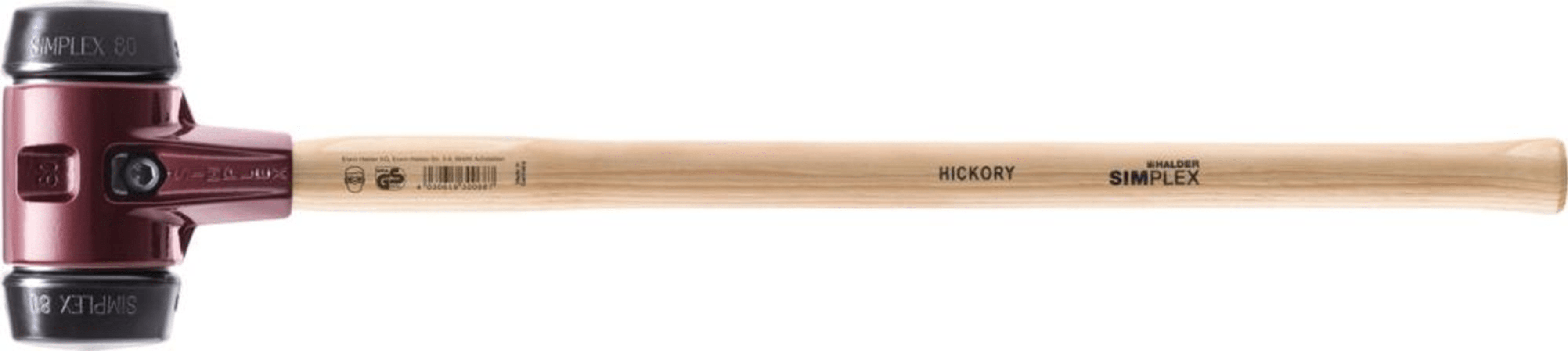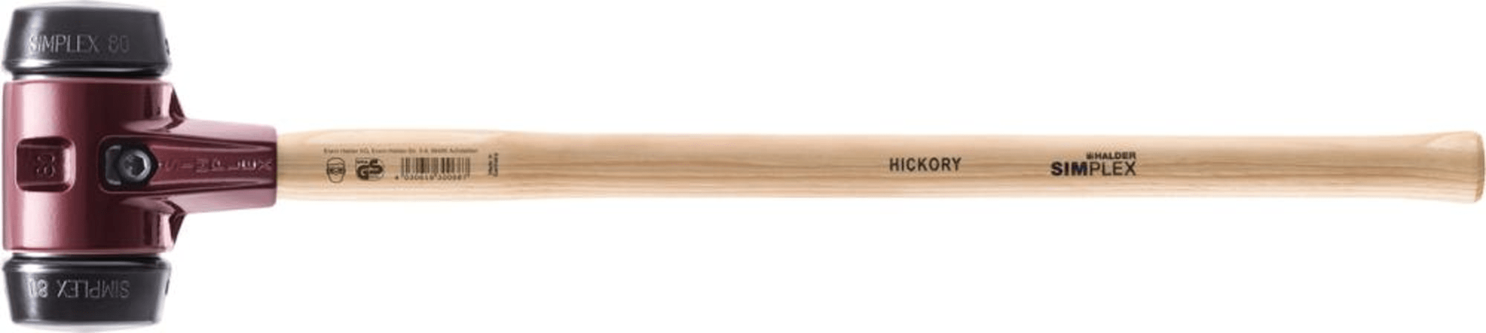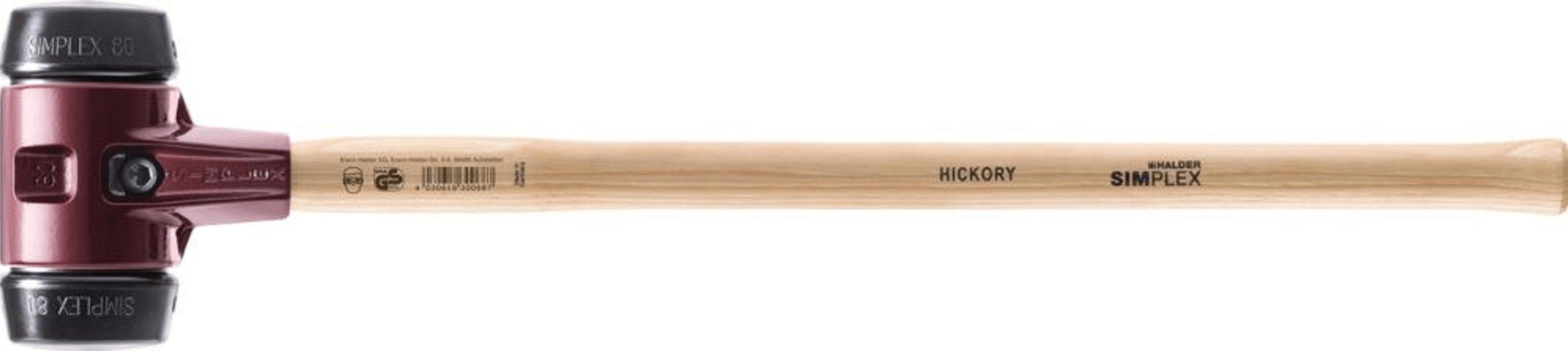 Vorschlag-Schonhammer SIMPLEX Nr. 3002• Schlagköpfe aus Gummikomposition, mittelhart, dämpfend, verschleißarm • Gehäuse aus Temperguss, zweigeteilt • Hickorystiel • Sämtliche Einzelteile sind austa