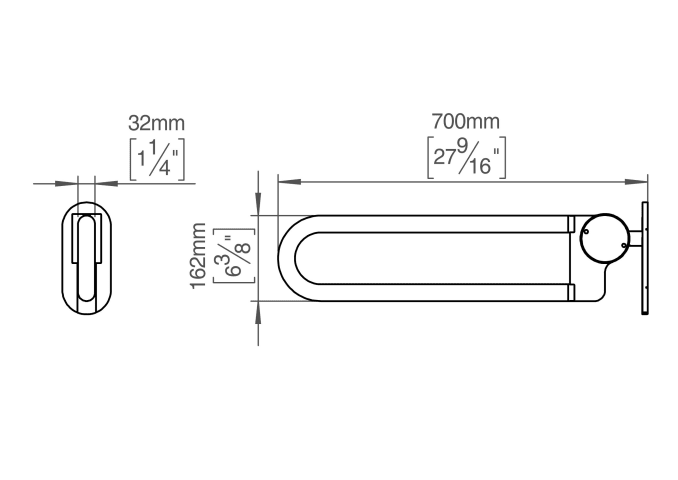 Knud Holscher Kollektion, klappbarer Haltegriff, barrierefrei, 700 mm, selbstschneidende Schrauben inklusive. Hergestellt aus hochwertigem, rostfreiem Edelstahl AISI 316, der vor starker Korrosion schützt. Zertifiziert nach EN 12182. 20 Jahre Garantie.