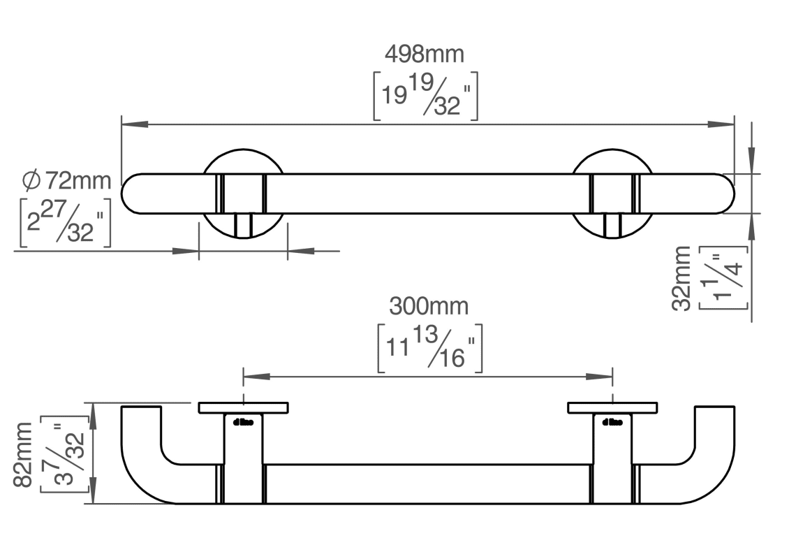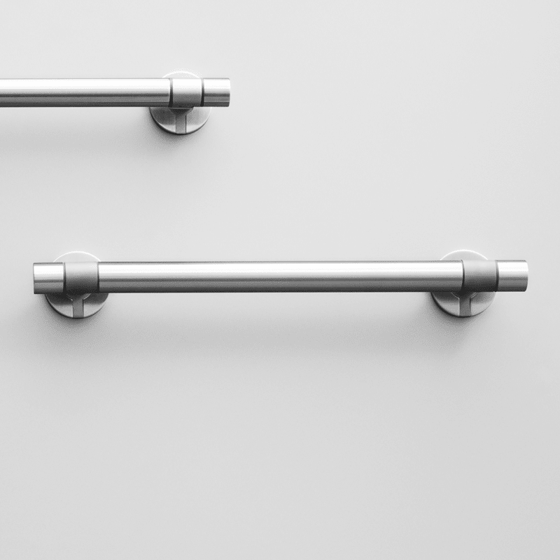 Knud Holscher Kollektion, Haltegriff-Set, gebogenes Ende, cc 300mm, selbstschneidende Schrauben inklusive. Hergestellt aus hochwertigem, rostfreiem Edelstahl AISI 316, der vor starker Korrosion schützt. Zertifiziert nach EN 12182. 20 Jahre Garantie.
