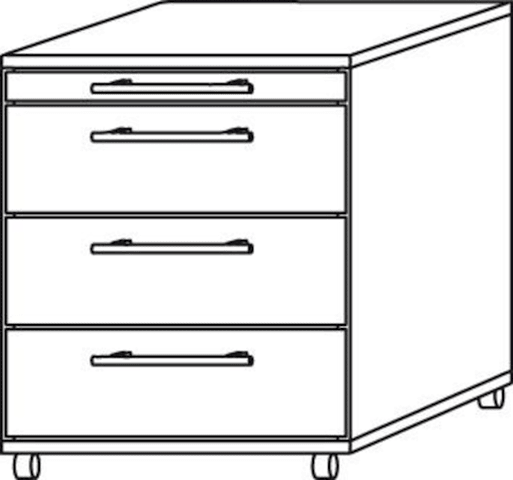 Rollcontainer zur Schreibtischserie B, 3 Schübe• Material: melaminharzbeschichtete Platte nach DIN 14322 • Teleskop-Metall-Kugelführungen • Oberes Fach: besteht aus einem Utensilienauszug • Schubla