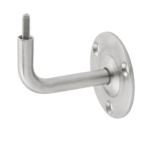 Handlaufstütze für 75 mm Wandabstand mit gewölbter Auflage. Mit drei versenkten Schraublöchern zum Anschrauben. Mit M6 Gewindestift.