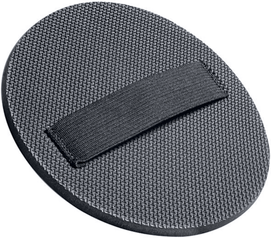 Handschleiftelle • Zur Aufnahme von Klett-Schleifscheibe • Zum Bearbeiten von profilierten Flächen, wie z. B. Handläufen, geeigne • Halbrunde Form für die Bearbeitung von Kanten und schwer zugänglichen Flächen