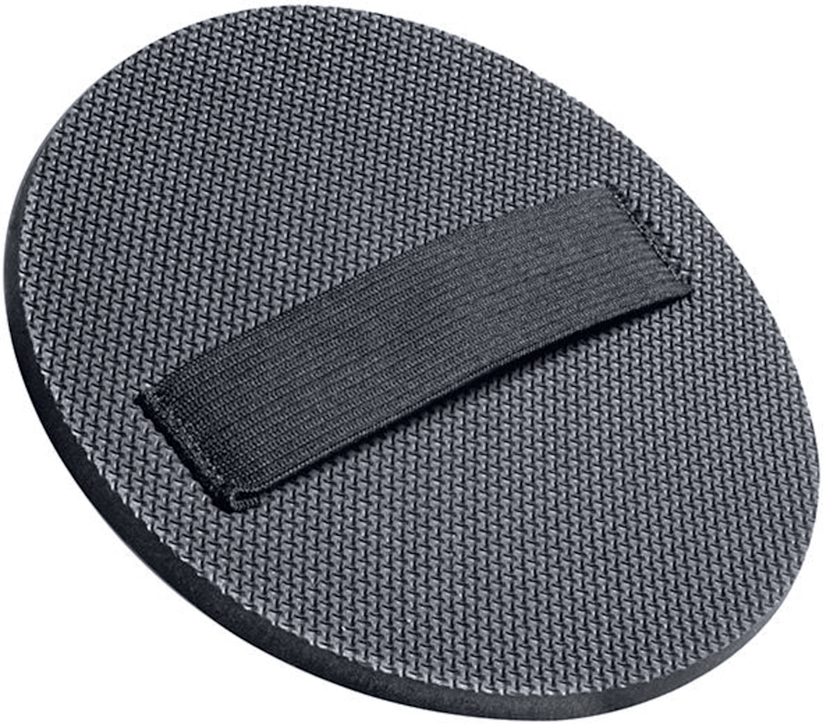 Handschleiftelle • Zur Aufnahme von Klett-Schleifscheibe • Zum Bearbeiten von profilierten Flächen, wie z. B. Handläufen, geeigne • Halbrunde Form für die Bearbeitung von Kanten und schwer zugänglic
