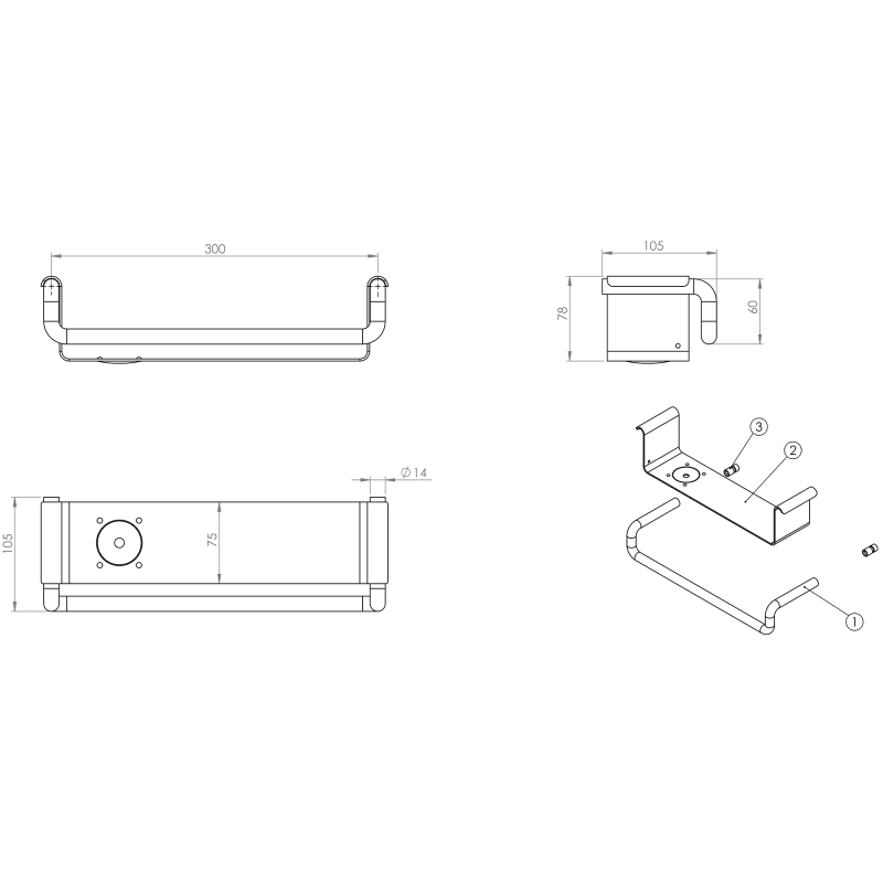 Knud Holscher Kollektion, Shampoo-Regal, 319x78x75mm, weiß, inklusive selbstschneidender Schrauben. Hergestellt aus hochwertigem, rostfreiem Edelstahl AISI 316, der vor starker Korrosion schützt. 20 J