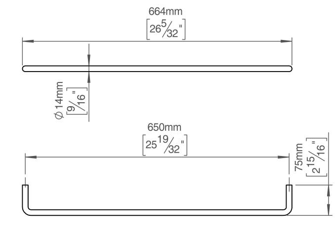 Knud Holscher Kollektion, Handtuchhalter, 14x650mm, Buchse aus poliertem Messing. 20 Jahre Garantie.