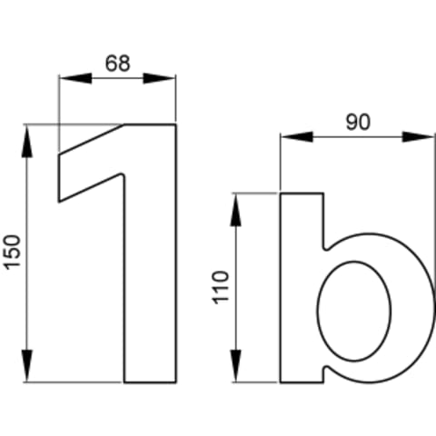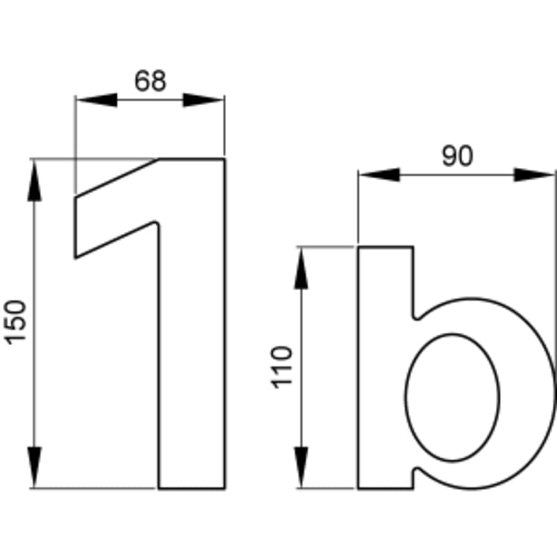 Hausnummer / Buchstabe, EZ205, Edelstahl matt. Zahlen ca. 150 mm Höhe, Buchstaben ca. 110 mm Höhe.