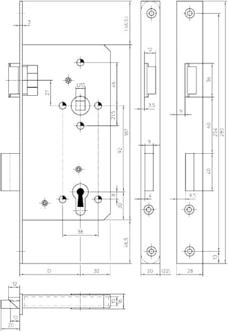 Haustür-Einsteckschloss 154-PZW/60-R-28-K-48