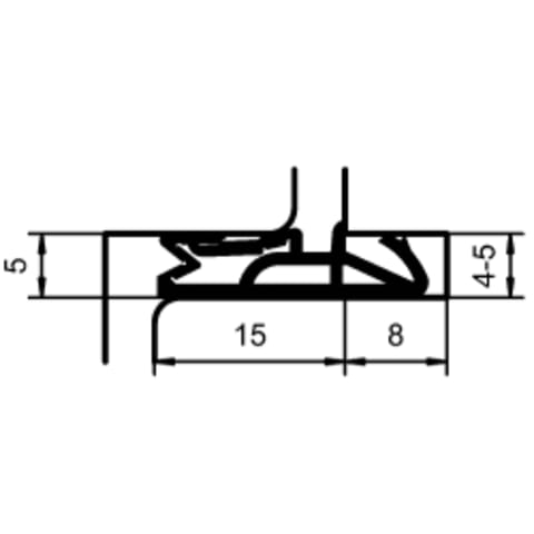 Dichtung für Außentüren mit günstigem Drehpunkt. • Einbau in Türen mit 15 mm Falzhöhe und 4‑5 mm Nutbreite • gewährleistet einen hohen Toleranzausgleich bei verzogenem Türblatt • weiches, angenehmes