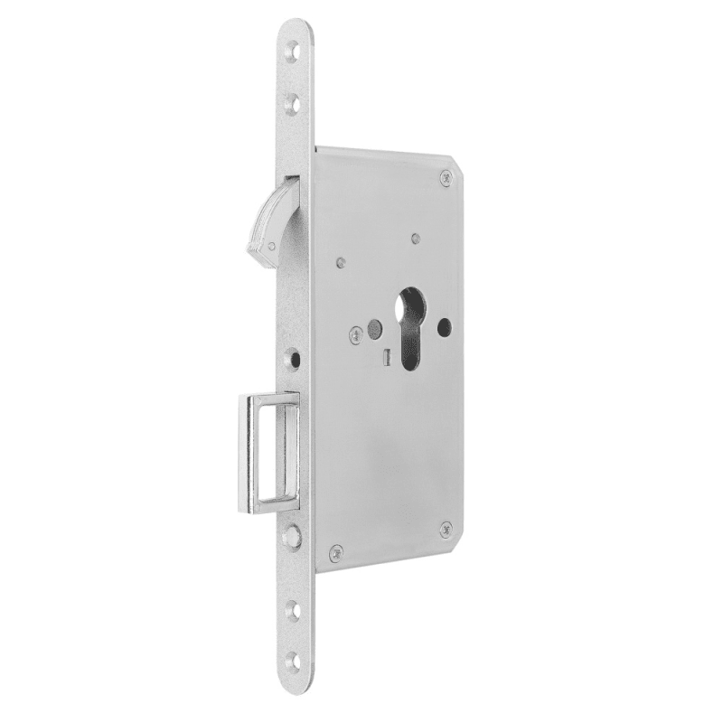 BKS Schiebetürschloss 0353; Produkttyp: Schiebetürschloss; Produkttyp (Hersteller): Schiebetürschloss; Ausführung: mit Springgriff,mit Zirkelriegel; Stulpform: Flachstulp; Material Stulp: Edelstahl; S