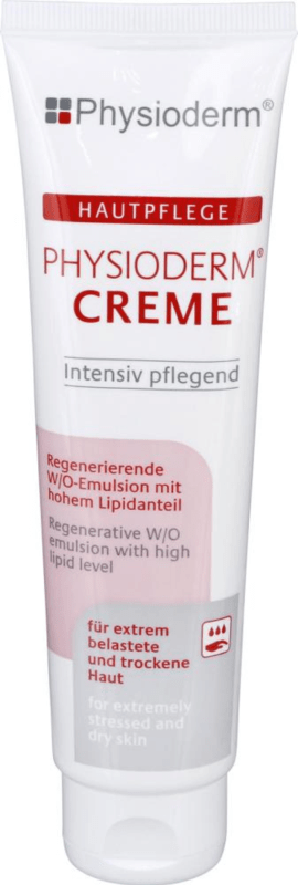 Hautpflegecreme Physioderm® • Pflegecreme für extrem belastete, trockene Haut • Regenerierende W/O-Emulsion • Intensiv rückfettend • Silikonfrei • Für Hände und Gesicht
