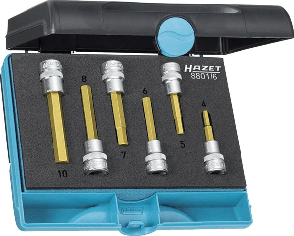 Inhalt: 6 Schraubendreher-Einsätze 4; 5; 6; 7; 8; 10 mm.