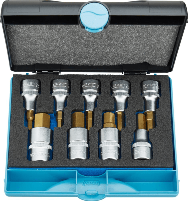 Inhalt: 9 Schraubendreher-Einsätze für 6-kant-Schrauben 5; 6; 7; 8; 9; 10; 12; 14; 17 mm.