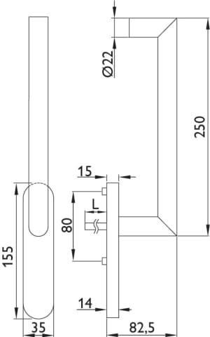 Hebe-Schiebetürgriff 1808 BASIC 08, 180° Rasterung, verdeckte Verschraubung, mit Vierkantst. 10 x 95 mm u. Schrauben M6 x 80 mm, Oberfl. 60 (Edelstahl matt)