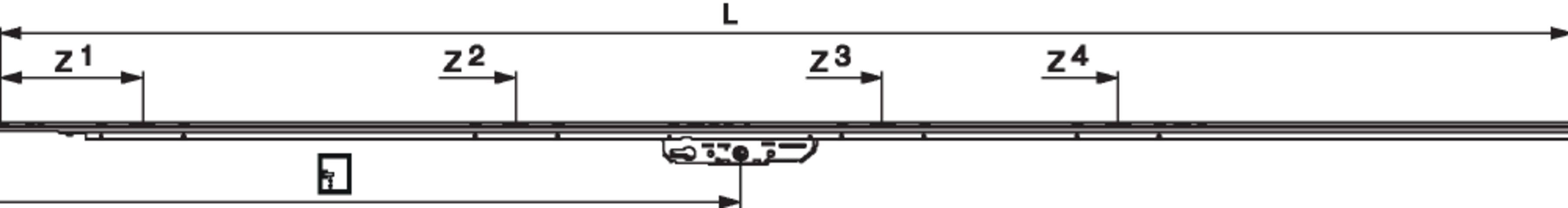 Maco HS Getriebe 400kg Rail für Bolzen Gr.4 FFH 2.060-2.560 DM 37,5 GM 1.000 PZ Stulp 18 silber eloxiert 227363