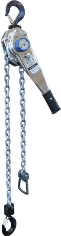 Hebelzug Modell PREMIUM PRO • Getriebe- und Bremsgehäuse: robuste Stahlblech-Konstruktion, pulverbeschichtet • Kettenführung: passgenaue Führung • Kette: vergütete, galvanisierte Lastkette (Länge 1,5 m) mit Qualitätseigenschaften nach DIN EN 818-7-T • Haken: mit gegossener Sicherheitsklappe, Verbindungsteile: galvanisiert • Handrad: groß, griffig und geschlossen zum Schutz der Finger • Hebelende: mit griffigem Überzug Hinweis: Der stabile Hebelzug ist für härteste Anforderungen ausgelegt und serienmäßig mit Sicherheitsscheibenbremse ausgestattet.