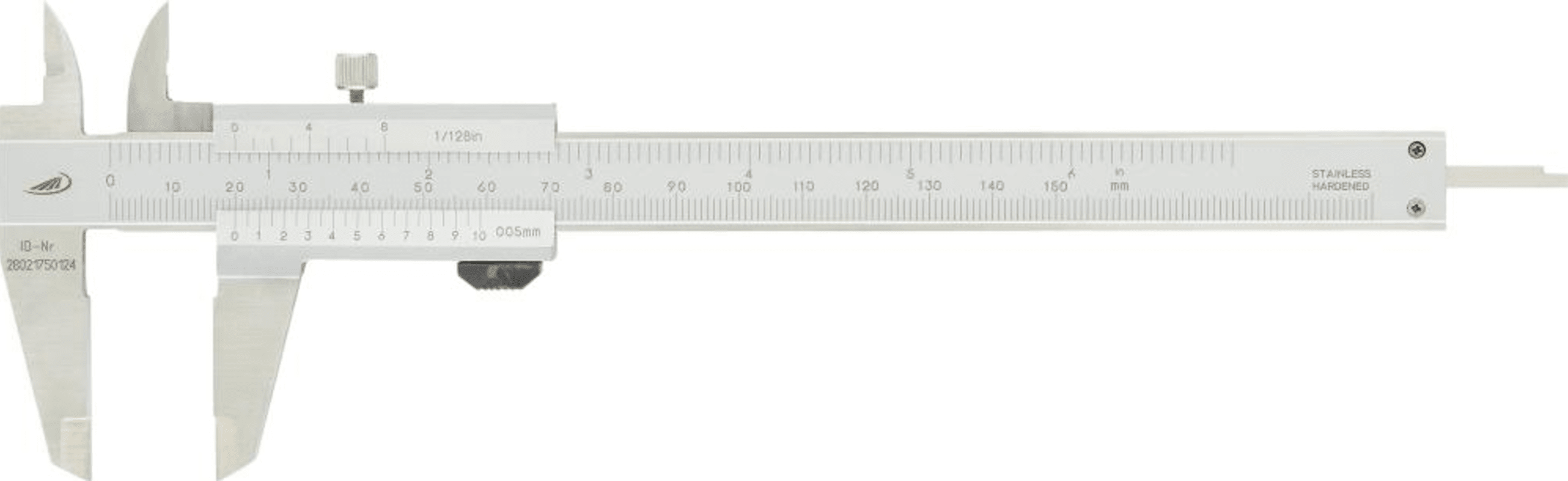 Taschenmessschieber• DIN 862 • Stahl, rostfrei • Nonius und Skala matt verchromt • 4-fach-Messung (Innen-, Außen-, Tiefen- und Stufenmessung) • Gewindetabelle auf der Rückseite Lieferung: Im Kun