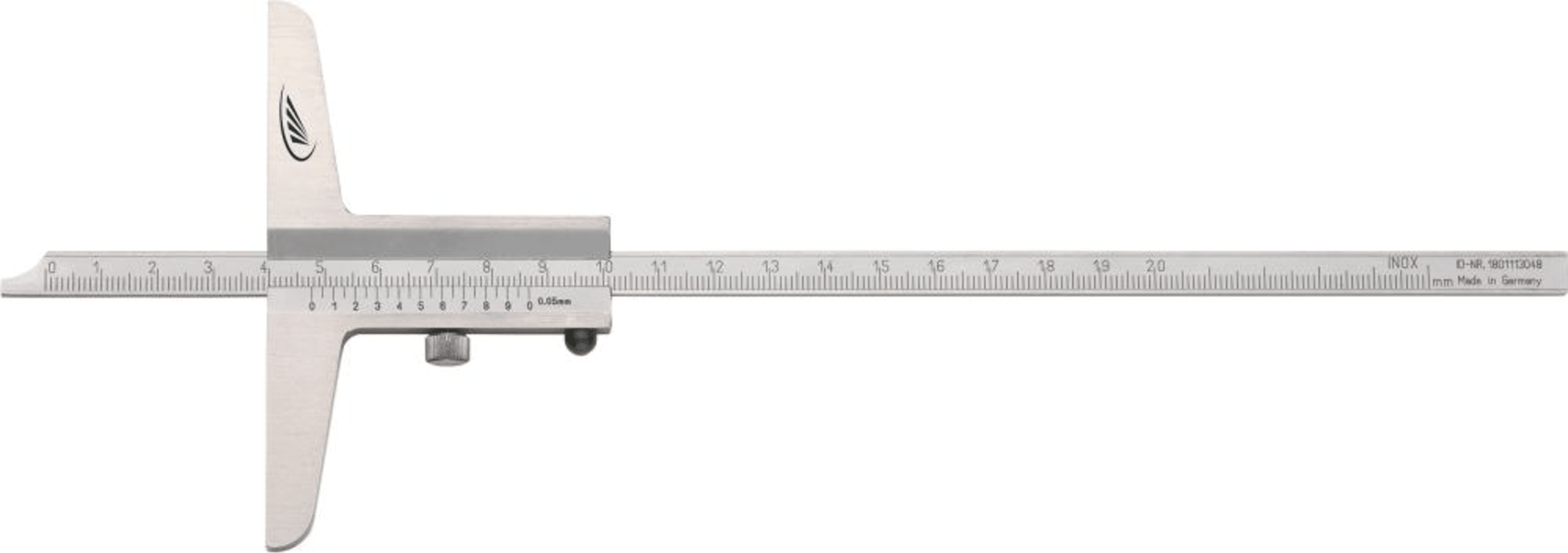 Tiefenmessschieber• DIN 862 • Stahl, rostfrei • Nonius und Skala matt verchromt • Hauptteilung gegen Abnutzung leicht vertieft liegend • Mit Laser-Skalierung • Mit Feststellschraube