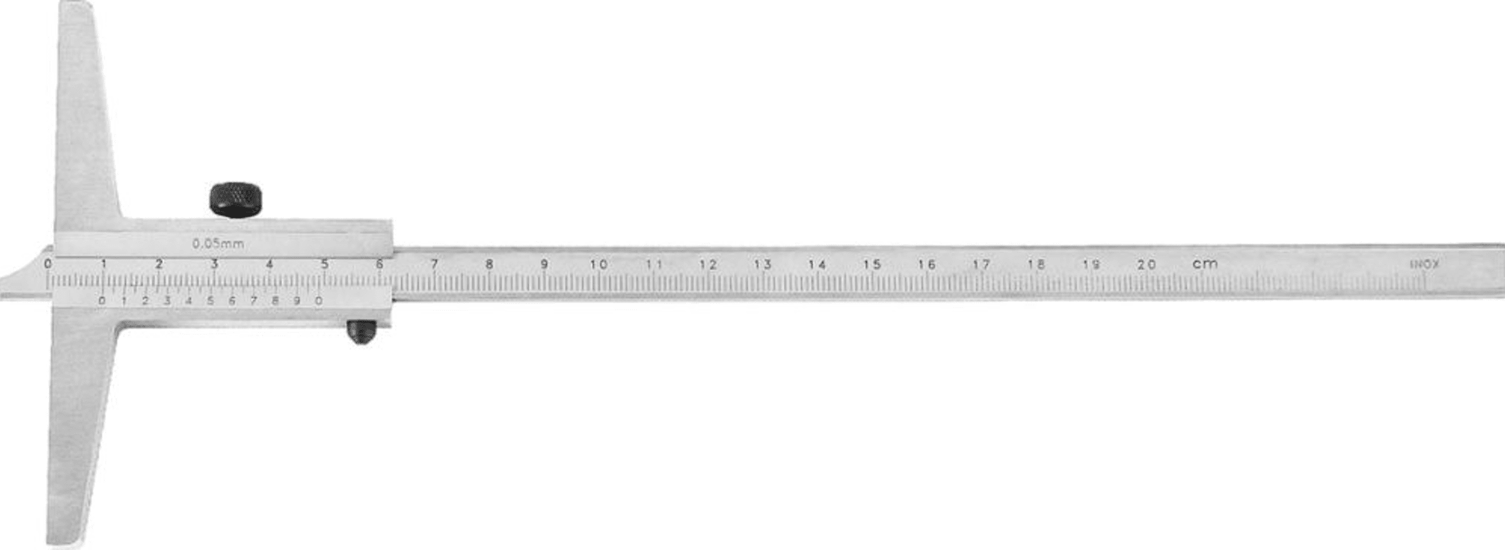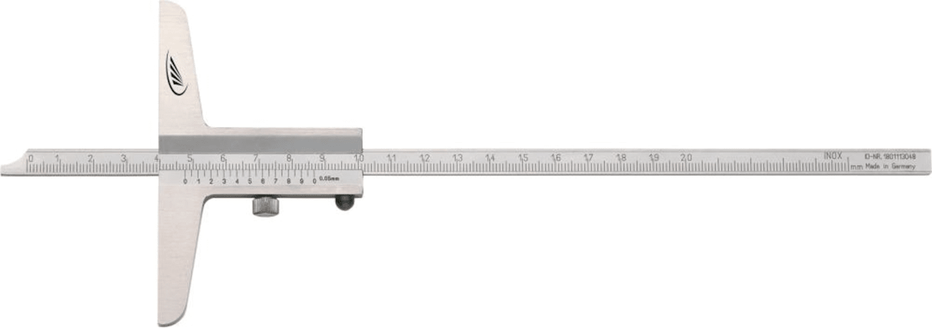 Tiefenmessschieber• DIN 862 • Stahl, rostfrei • Nonius und Skala matt verchromt • Hauptteilung gegen Abnutzung leicht vertieft liegend • Mit Laser-Skalierung • Mit Feststellschraube