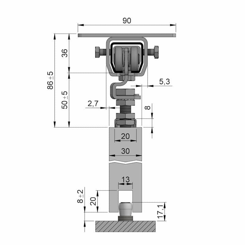 Helm Schiebetorsystem 100, Deckenmontage 100kg 4000mm SP100D101200214000