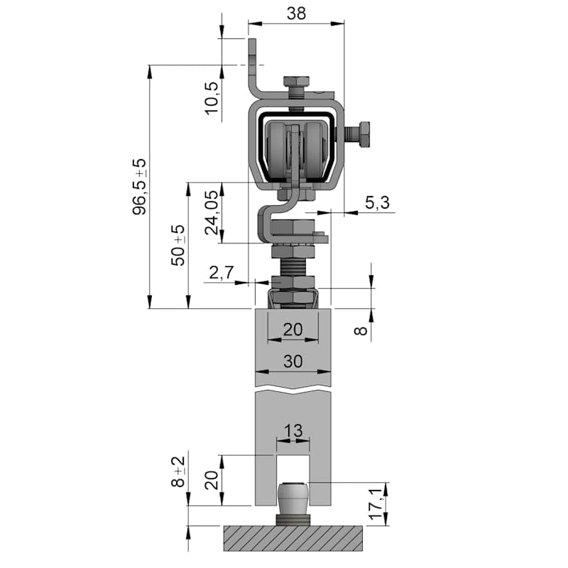 mit kurzen Laufschienen für Schiebetore bis 100 kg Flügelgewicht