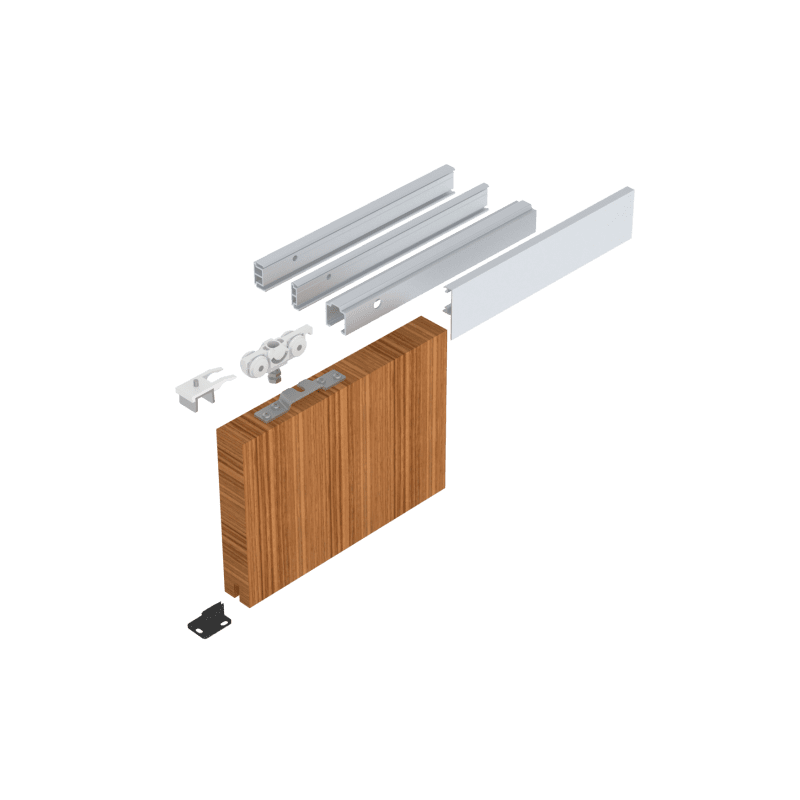 Schiebetürsystem für Wandmontage mit 24 mm Abstandsprofil und Verblendungfür Innenschiebetüren aus HolzRollapparate: höhenverstellbar im eingebauten Zustand, mit belast- barer Pendeleinlage für eine l