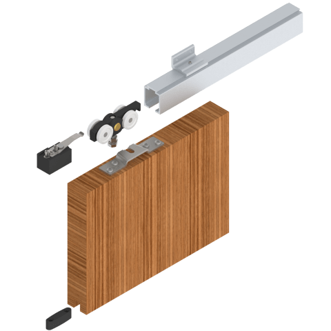 Schiebetürsystem für Wandmontage mit Wandwinkelnfür Innenschiebetüren aus HolzRollapparate: höhenverstellbar im eingebauten Zustand, mit belast-barer Pendeleinlage für eine lange Gebrauchsdauergeprüft