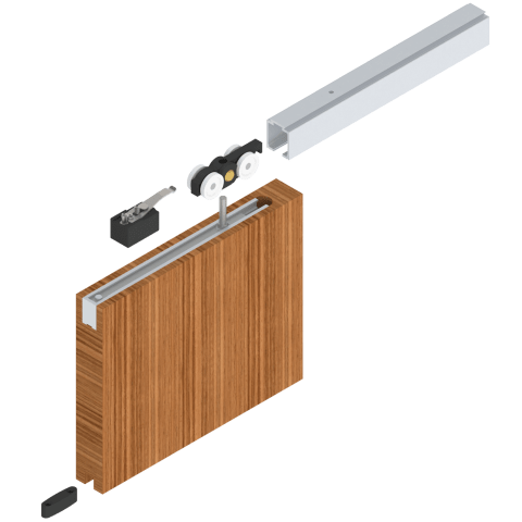 Schiebetürsystem für minimale Einbauhöhe (ME-A), Deckenmontagefür Innenschiebetüren aus HolzRollapparate: höhenverstellbar im eingebauten Zustand, mit belastbarer Pendeleinlage für eine lange Gebrauch