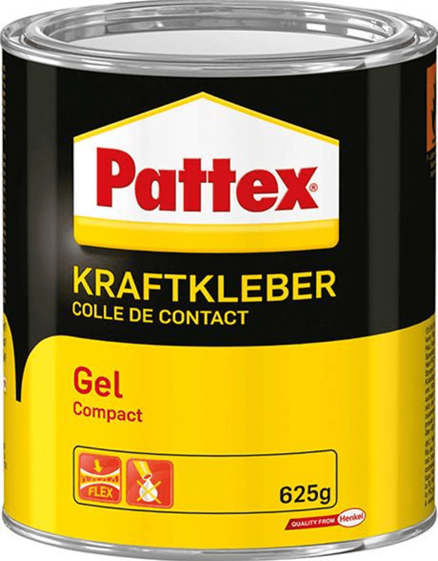 Pattex® Kraftkleber Compact Gel• Frei von Cyclohexan • Lösungsmittelhaltiger Kontaktkleber • Tropft nicht, zieht keine Fäden • Für Kleben an senkrechten Flächen geeignet • Nicht geeignet für Polyp