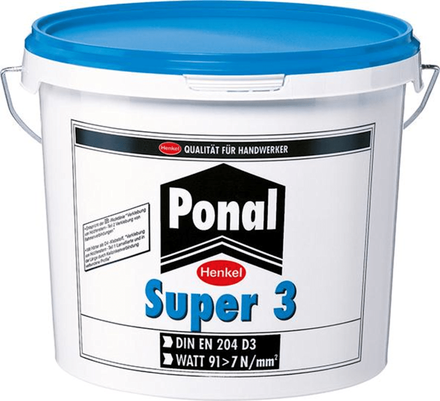 Der Ponal Holzleim Wasserfest Super 3 macht bedingt wasserfest Verleimungen einfach möglich. Dabei ist der Holzleim wasserfest nach DIN EN 204/D3 (mit Härter DIN/EN D4) und für Montage-, Fugen- und Fl
