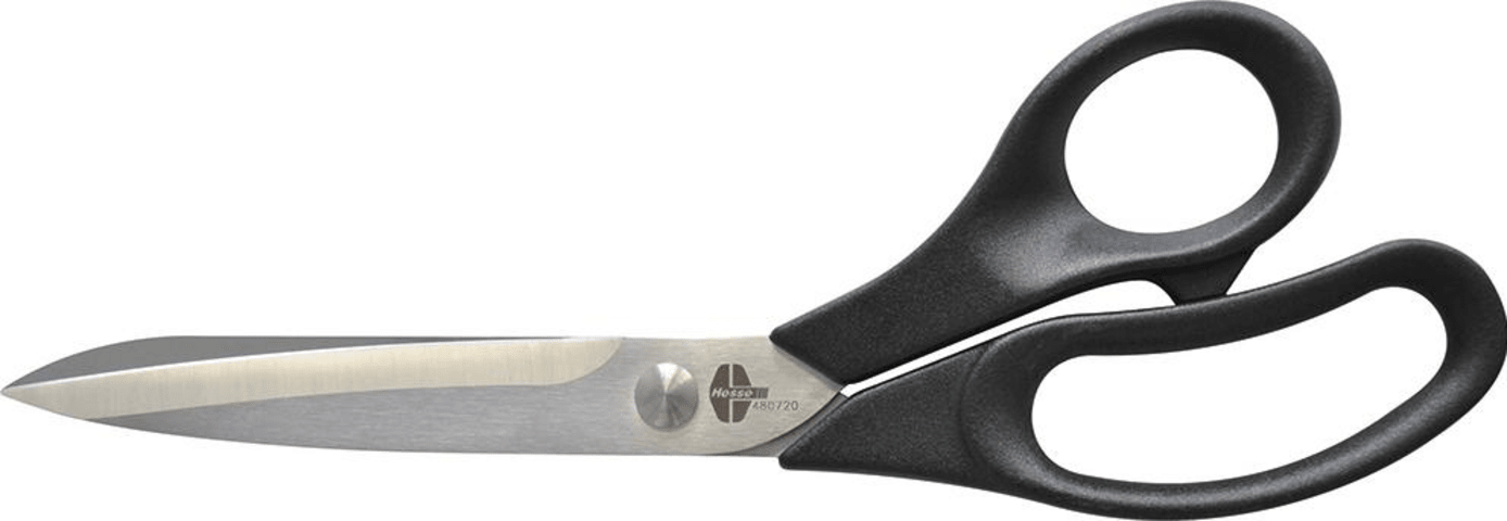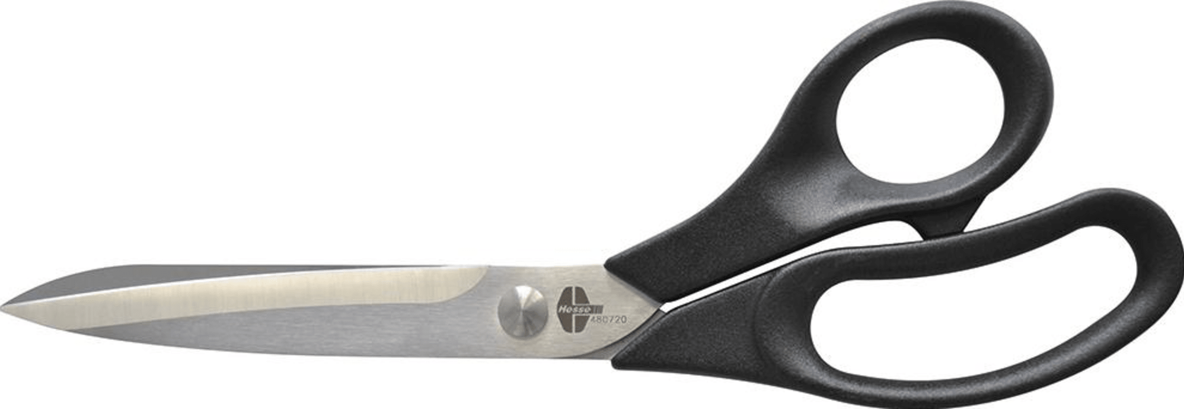 Arbeitsschere• Schneiden aus Edelstahl, rostfrei, poliert • Glatte Schneiden • 1 langes und 1 rundes Griffauge • Griffe mit Kunststoffhüllen