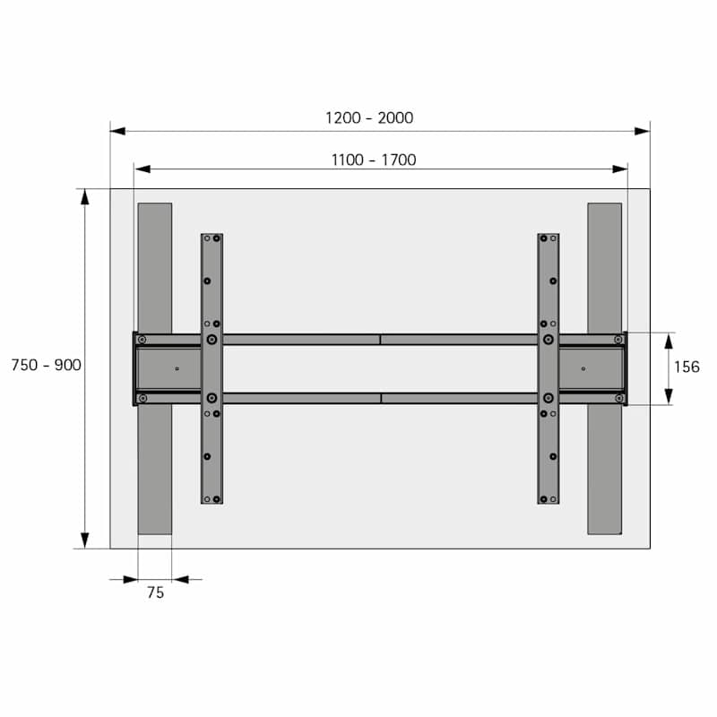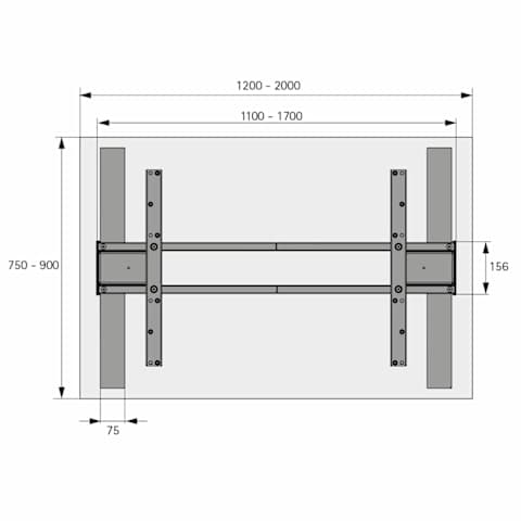 • Für Tischplattenbreite 1200 - 2000 mm