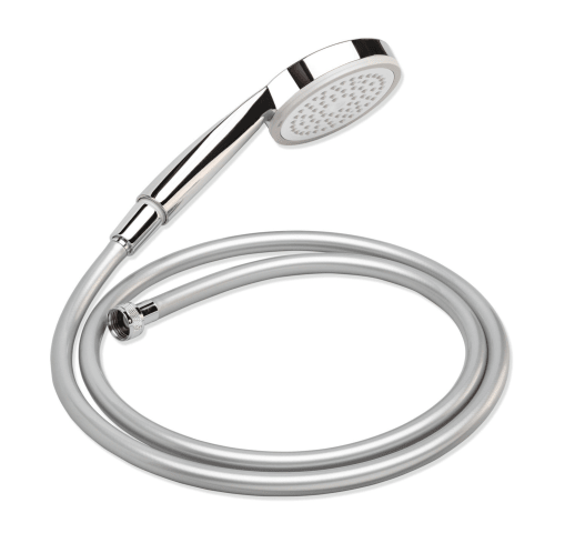 besteht aus einer 1-Strahl Handbrause mit Brauseschlauch. Es ist ein beweglicher Duschkopf, der an einem flexiblen Schlauch befestigt ist. Im Gegensatz zu einer fest installierten Kopfbrause lässt sich eine Handbrause frei bewegen und der Wasserstrahl gezielt ausrichten.